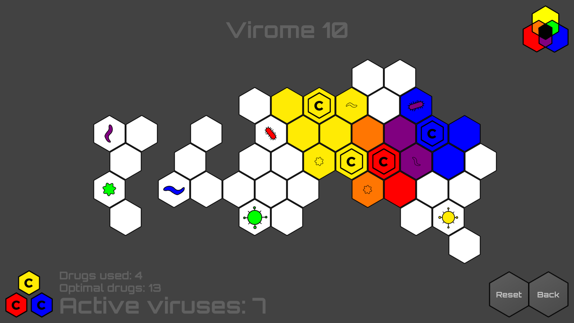 A puzzle game where you assume the role of a lab scientist, mixing and matching coloured drugs to treat viruses. Treat the viruses. Save the world.